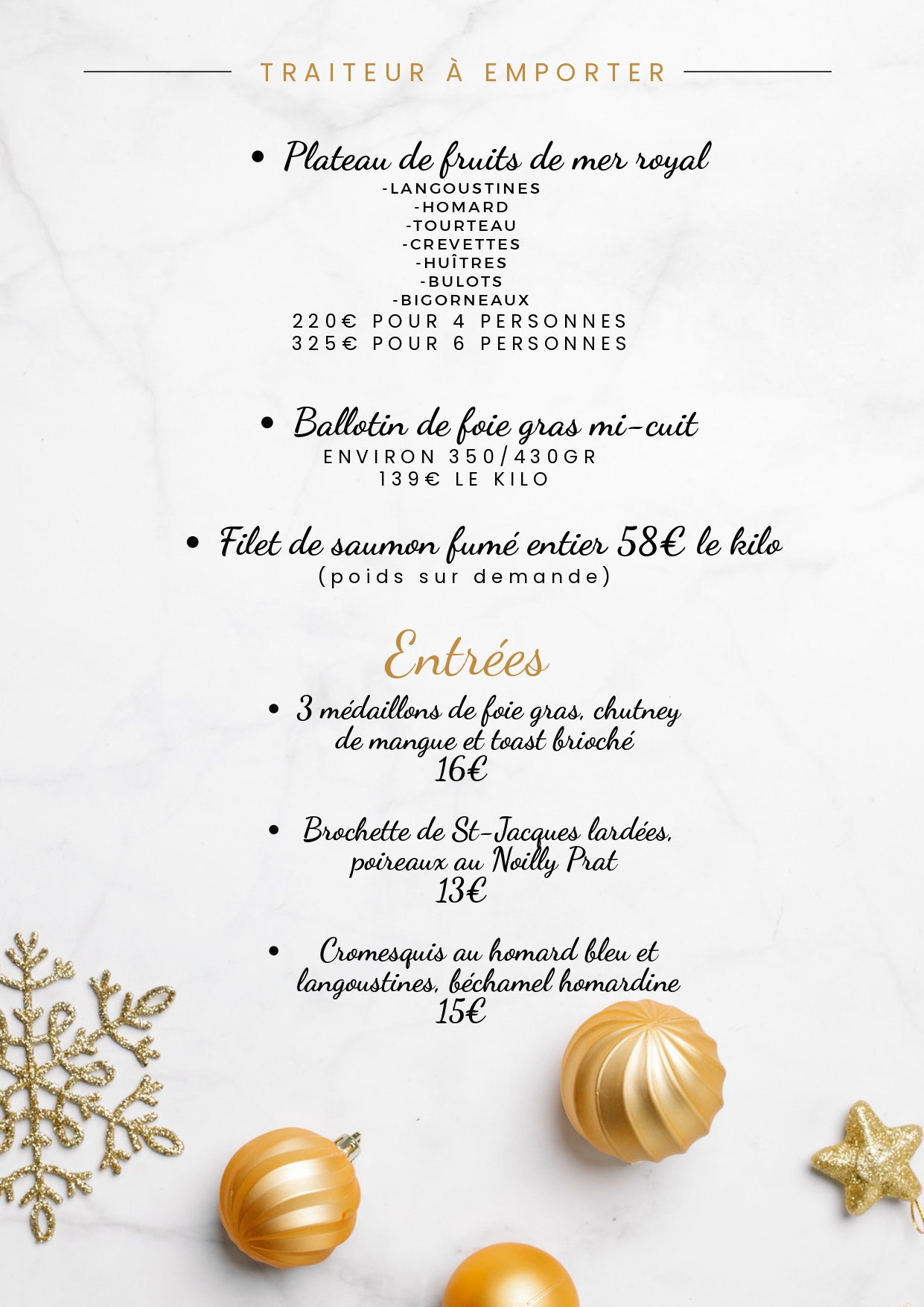 3. Retrait à emporter : Le 24 décembre, récupérez votre repas au restaurant entre 14h et 18h.